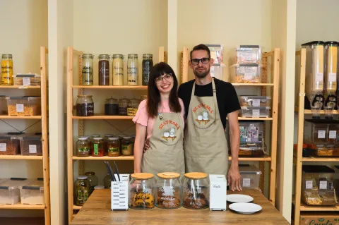 2023 nyarán született meg a gondolat, hogy szeretnénk nyitni egy saját csomagolásmentes boltot. Évek óta törekszünk arra, hogy a háztartásunk környezetbarát legyen és minimális hulladékot termeljünk. Szerettük volna ezt a szemléletünket és az ezzel kapcsolatos tapasztalatainkat a családunkon és a barátainkon kívül másokkal is megosztani, ezért gondoltuk, hogy belevágunk egy saját vállalkozásba. 2023 év végére az álmunk valóra vált és a szeretteink segítségével megnyitottuk a Szatócskát Újbuda szívében a Móricz Zsigmond körtér és az Allee között félúton, a Szabolcska Mihály utca 9 szám alatt.