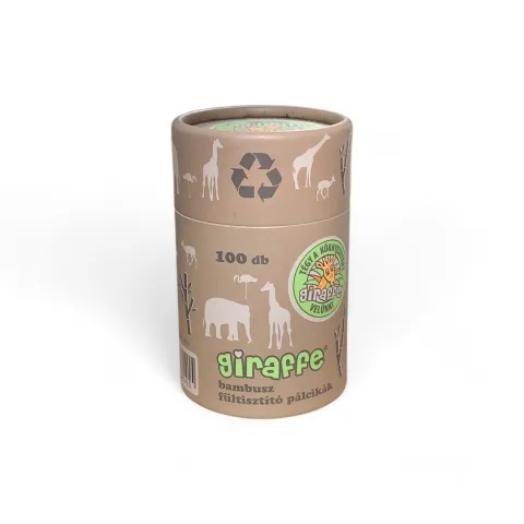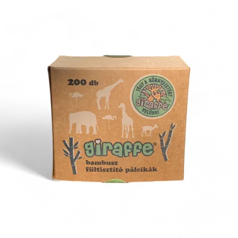 Giraffe bambusz fültisztító pálcikák, 100% pamutvattával. A pálcikák alkalmasak a fülek tisztításához, vagy akár sminkeltávolításra is.